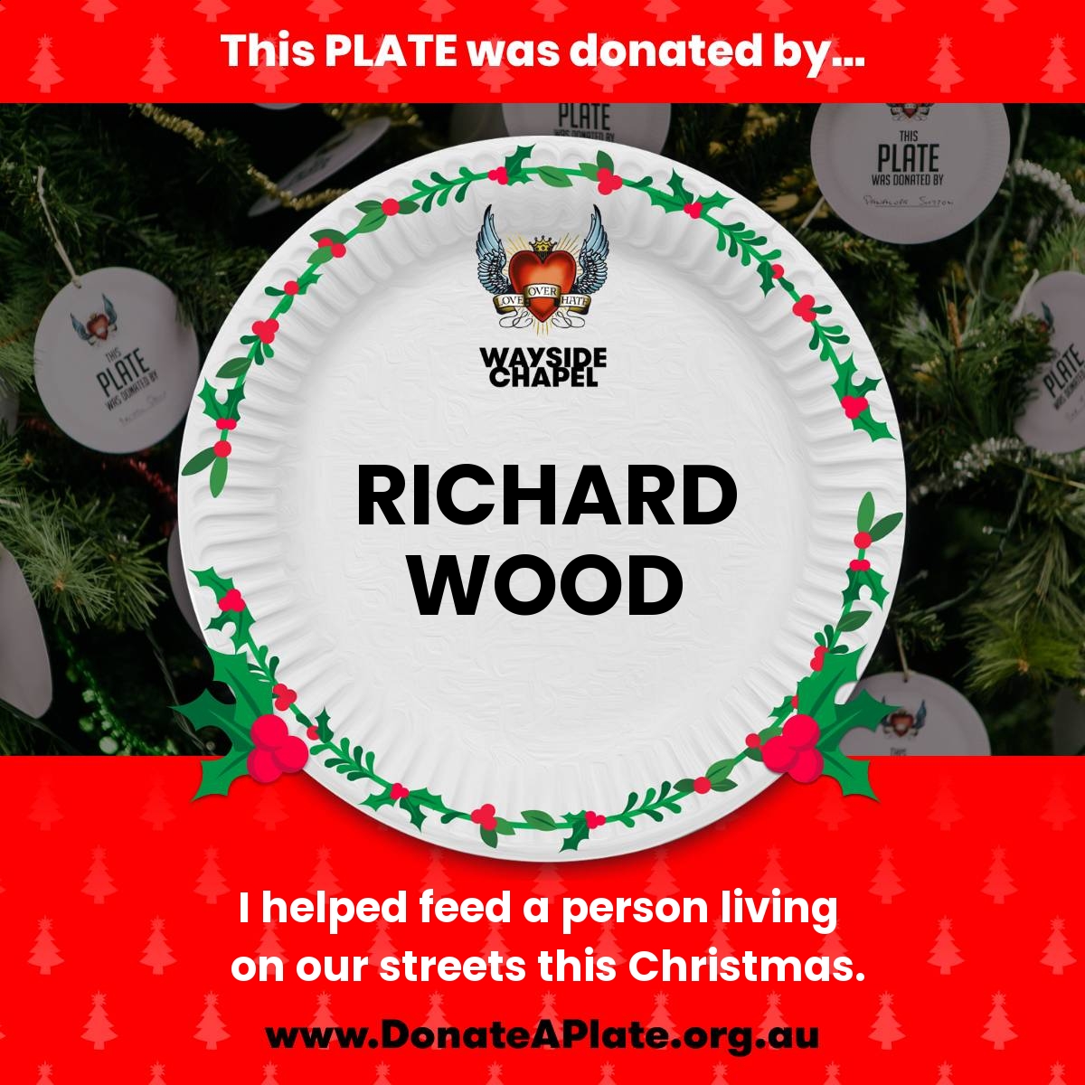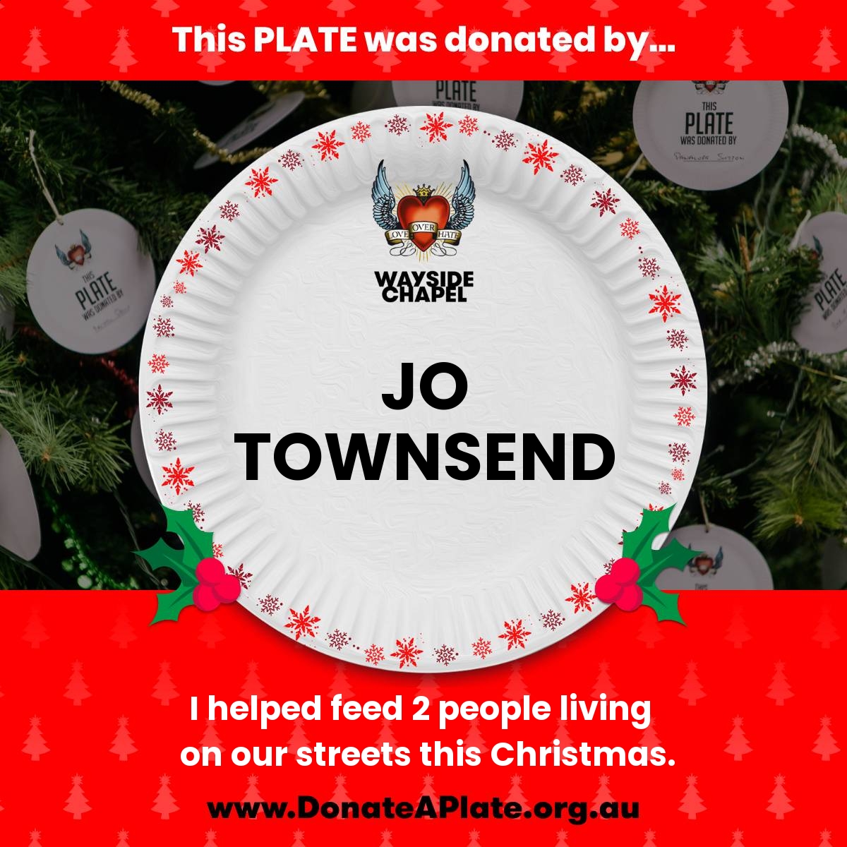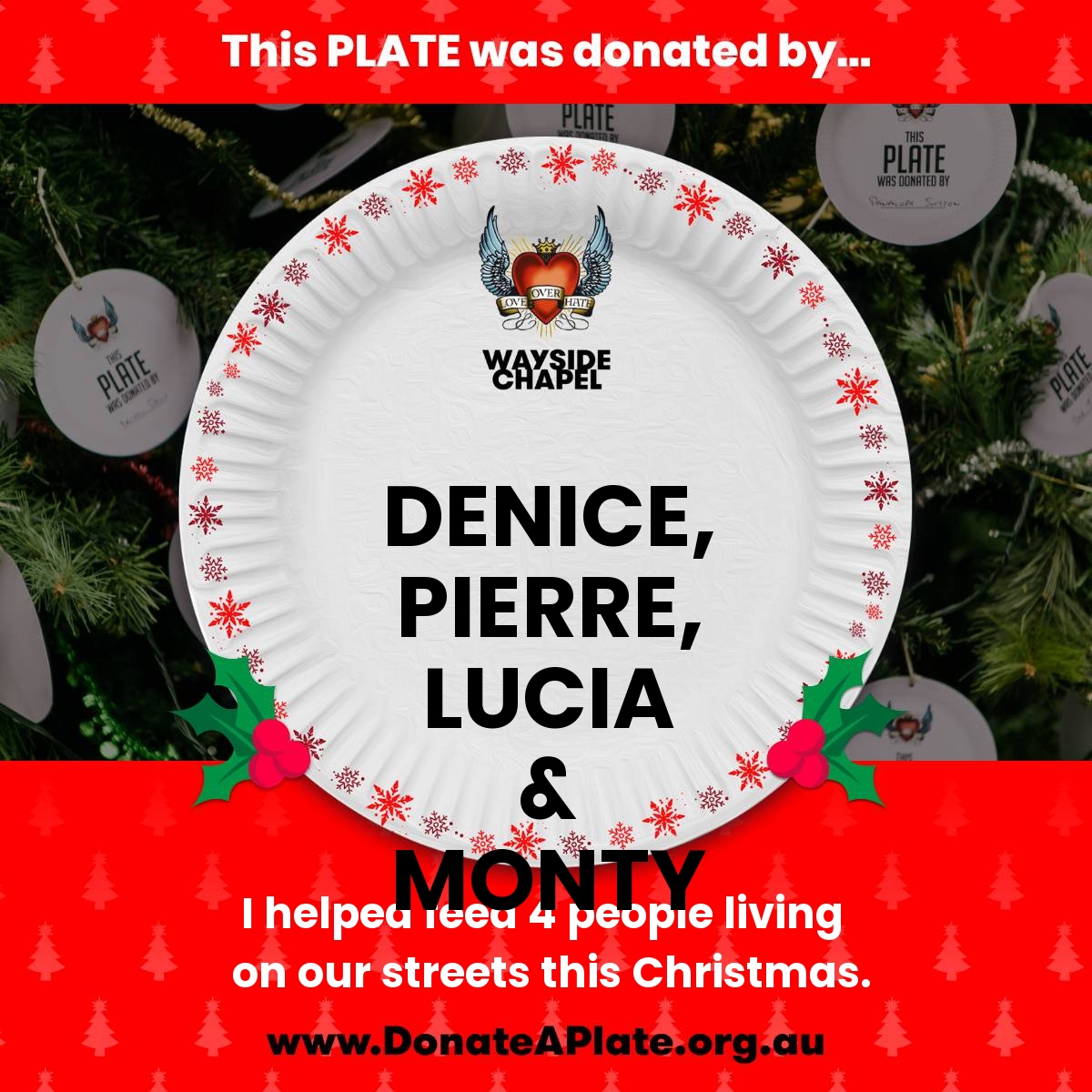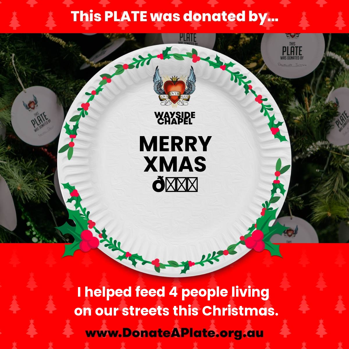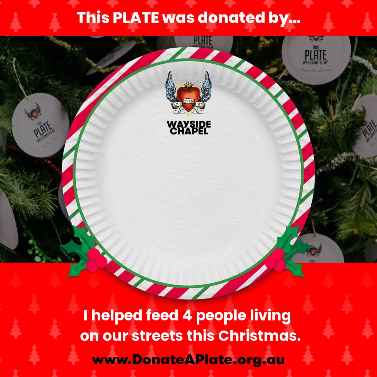Please 'Donate a Plate' now to sponsor a Christmas meal with all the trimmings, and ensure that people doing it tough during the holiday season receive the love, care and support they deserve.